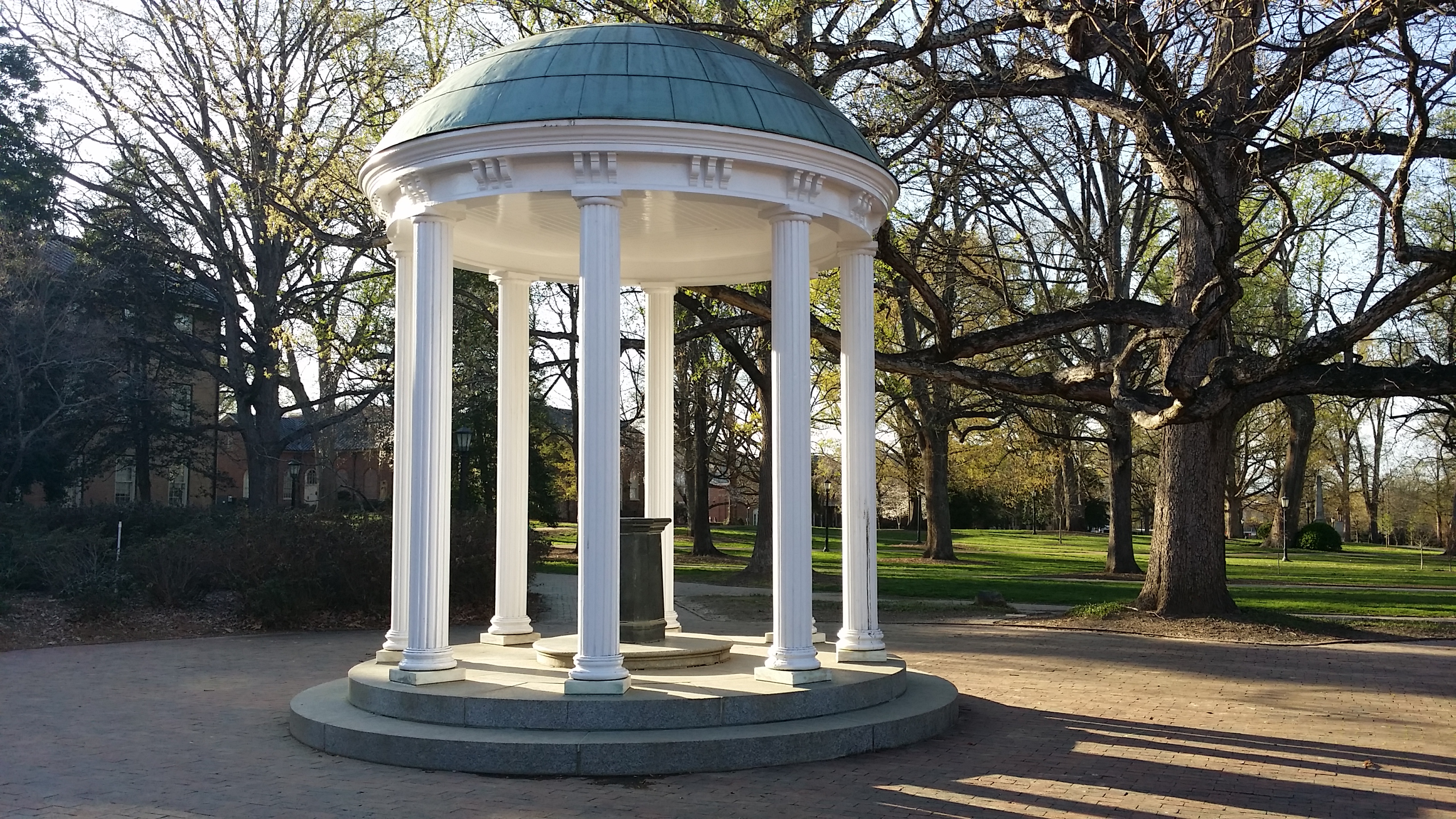 Vervolgens zijn we ook nog naar UNC gegaan – de University of North Carolina – in Chapel Hill. Dat is waar Pranav nu werkt. We hebben de waterbron gezien waar UNC om heen gebouwd is, en we zijn ook naar de Kenan-Flagler Business School geweest. Die ligt op een heuvel, omgeven door bomen, en niet zo omgeven door de rest van de campus als bij ons eigen Smeal College of Business het geval is. Wel leuk om te zien waar Pranav – en sommige hele bekende collega’s van hem – werken. Vreemd: Pranav’s kantoor heeft geen raam. Dat zou ik echt heel erg verschrikkelijk vinden, geen licht van buiten… Het gras bij de buren is niet altijd groener!