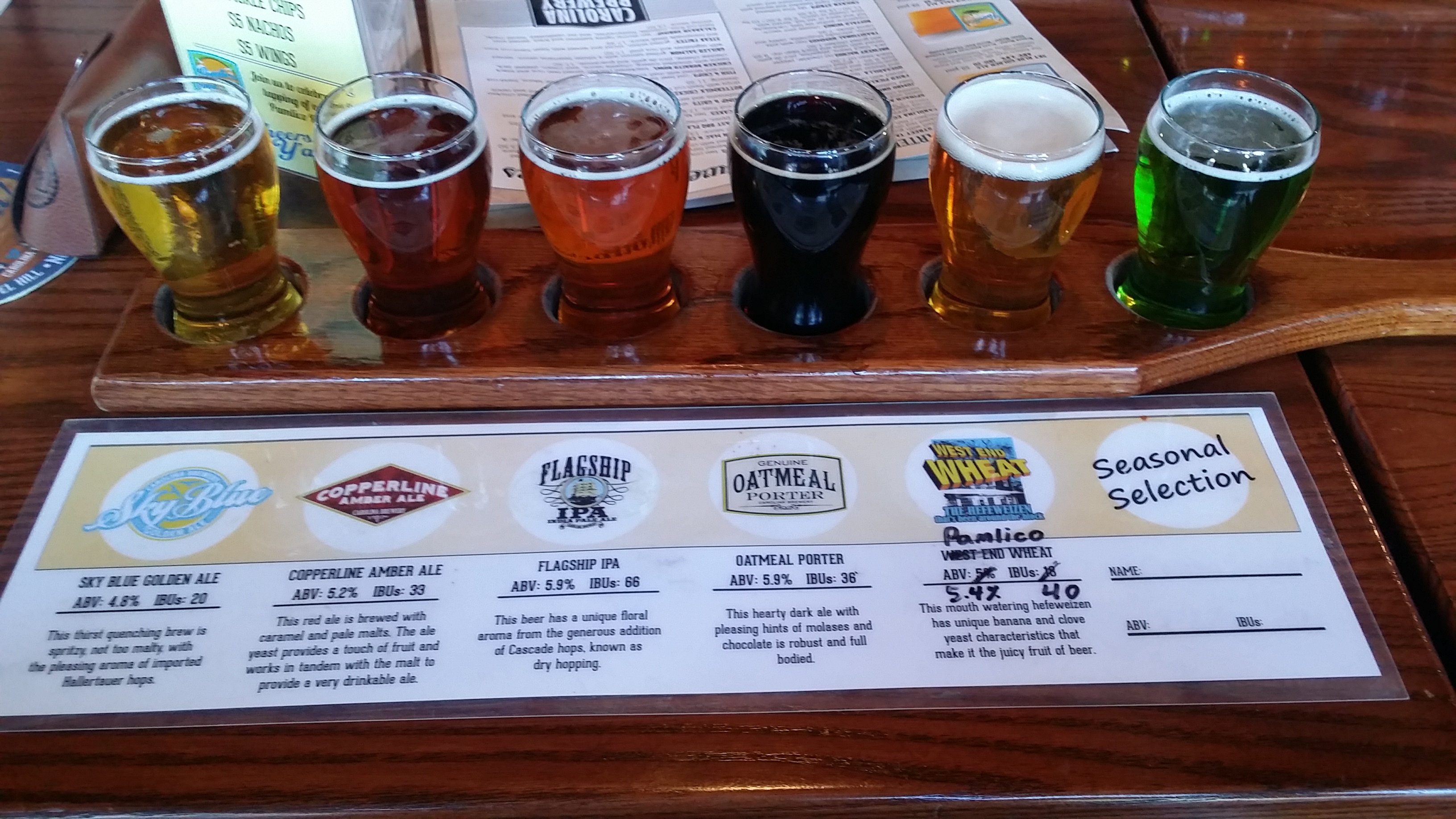 Vervolgens de vloeistoffen. Waar wij ook komen in Amerika, overal lijken ze heel veel speciaalbieren (of zelfs eigen bieren) te hebben. Voor de mannen is dat een reden om op kroegentocht te gaan bij ‘brewpubs’ (kroegen die hun eigen bier maken – daar hebben we er ook een hoop van in State College. Uiteraard komen er dan samplers op tafel!