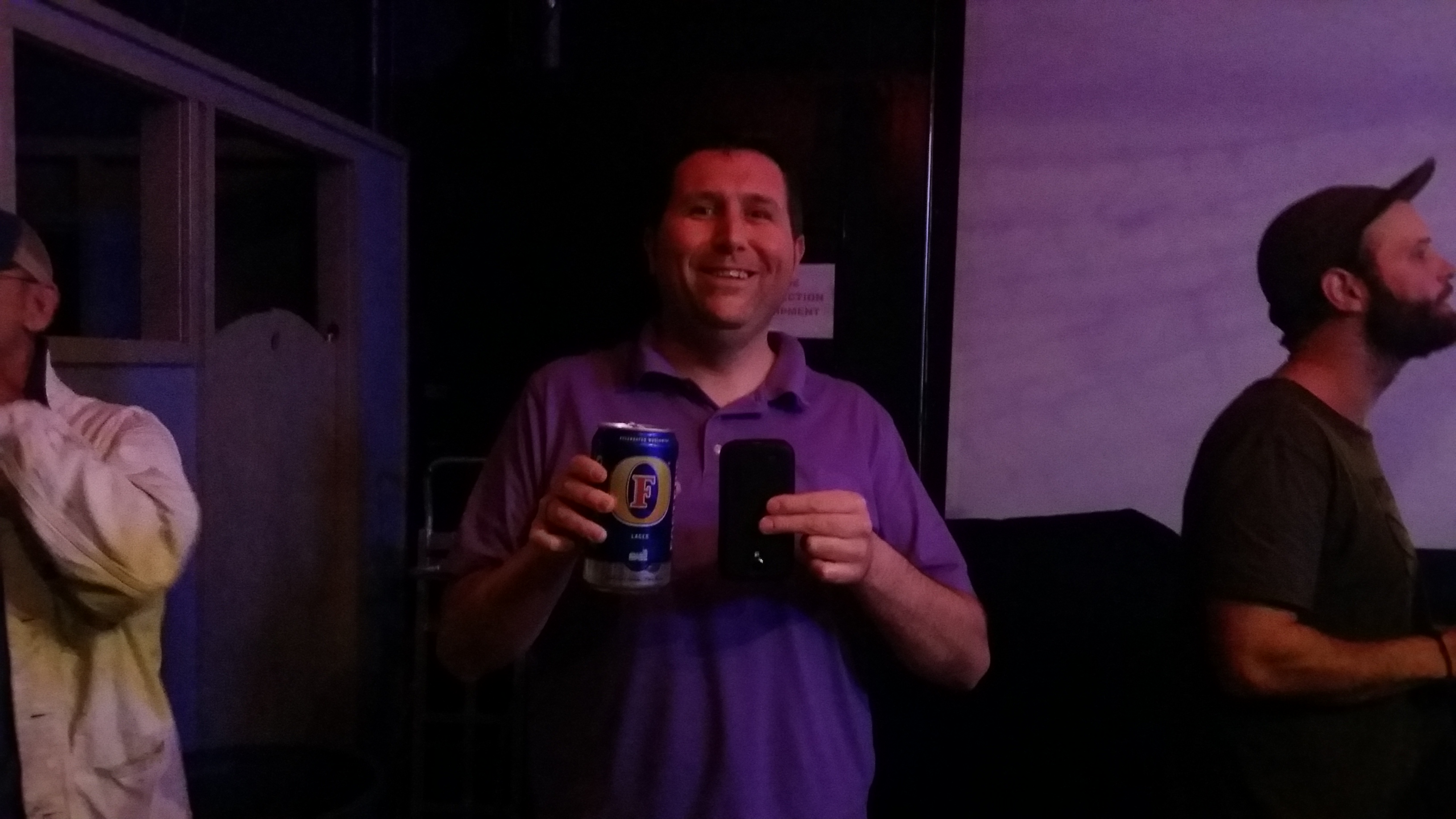 Ja, goed gezien! Die tent (met eigen brouwerij) had thema-bier die dag vanwege St. Patricks Day. Heel veel Amerikanen gaan die hele dag in het groen, en dat bier dus ook. Wij deden vrolijk mee!