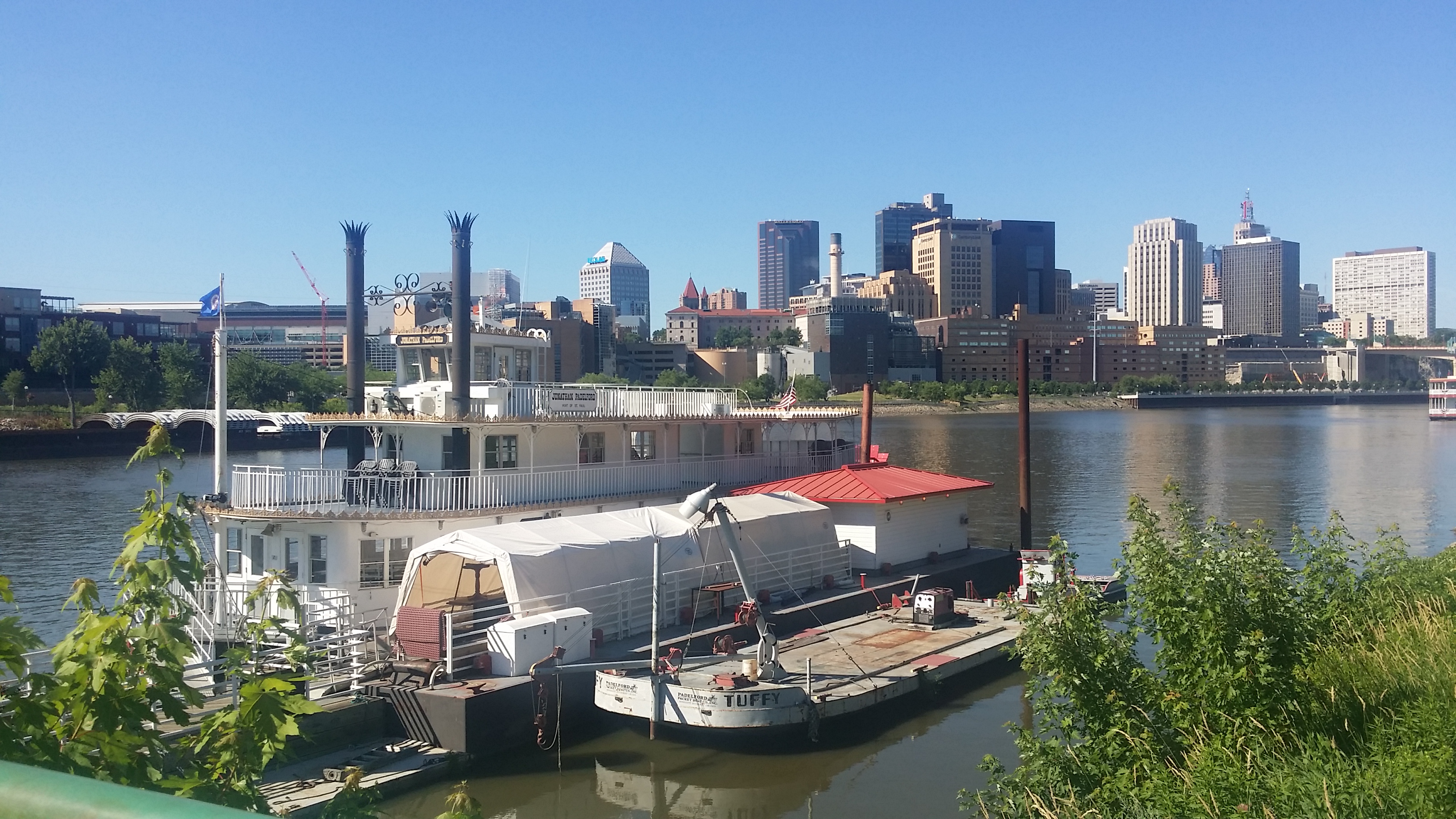 Vorige keer zagen we de Mississippi in de winter en van boven – dit keer waren we wat dichterbij vanaf Harriet Island (dat eigenlijk geen eiland is, en genoemd naar Harriet Bischop, een van de pioniersleraressen van de regio). Er lagen wat raderboten – dat zag er heel erg typisch Amerikaans uit.