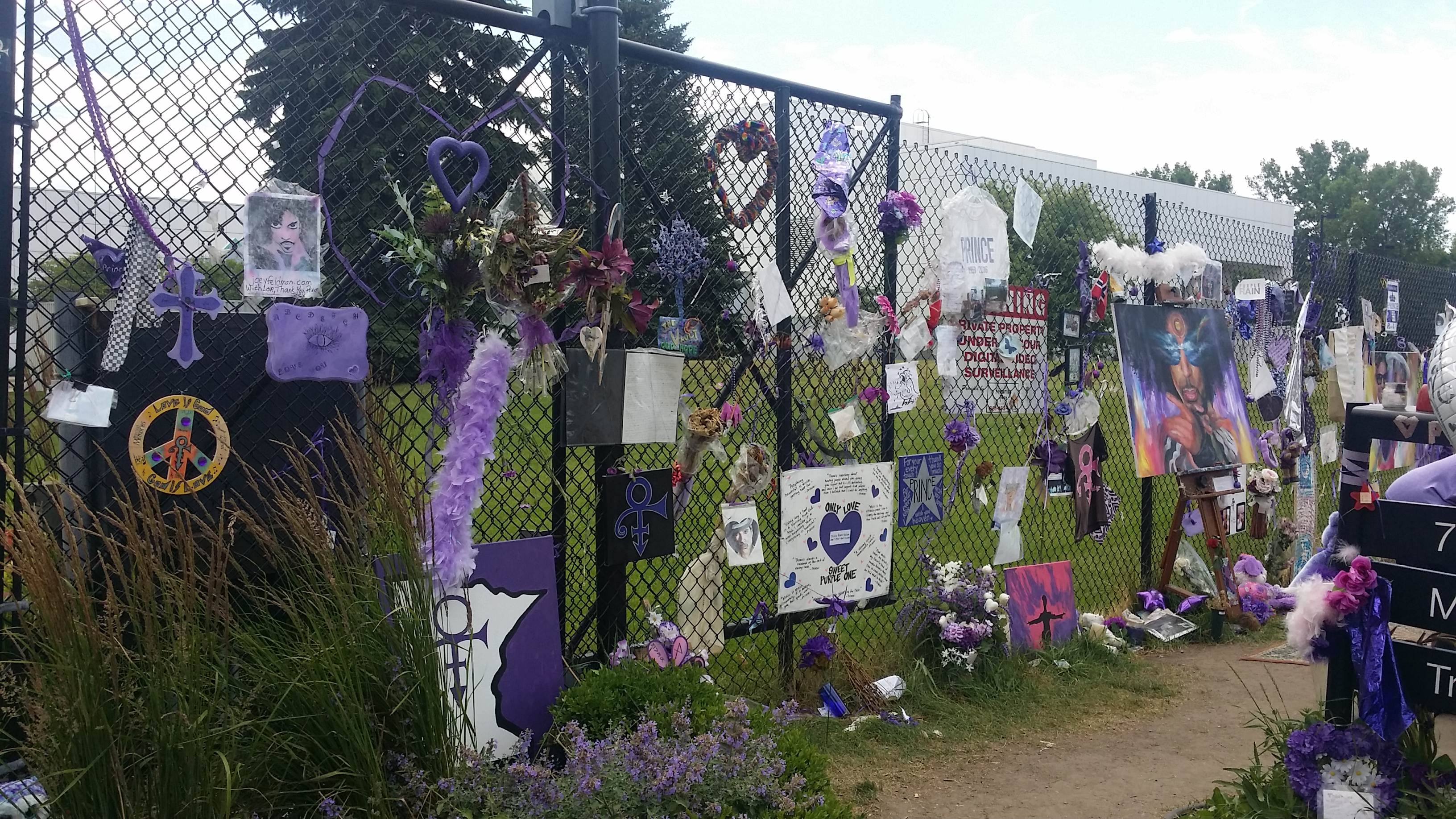 Op 21 april 2016 is Prince overleden. Prince komt uit Minneapolis, en woonde daar nog steeds (technisch gezien in een voorstad tussen Minnetonka en Minneapolis). Als onderdeel van de toeristische route deden we ook Paisley Park aan, het woonhuis en de studio van Prince. We konden niet naar binnen (logisch), maar ook aan de buitenkant was er genoeg te zien. We zagen allerlei kaartjes, foto’s, beertjes en nog veel meer hangen, uit de hele wereld.