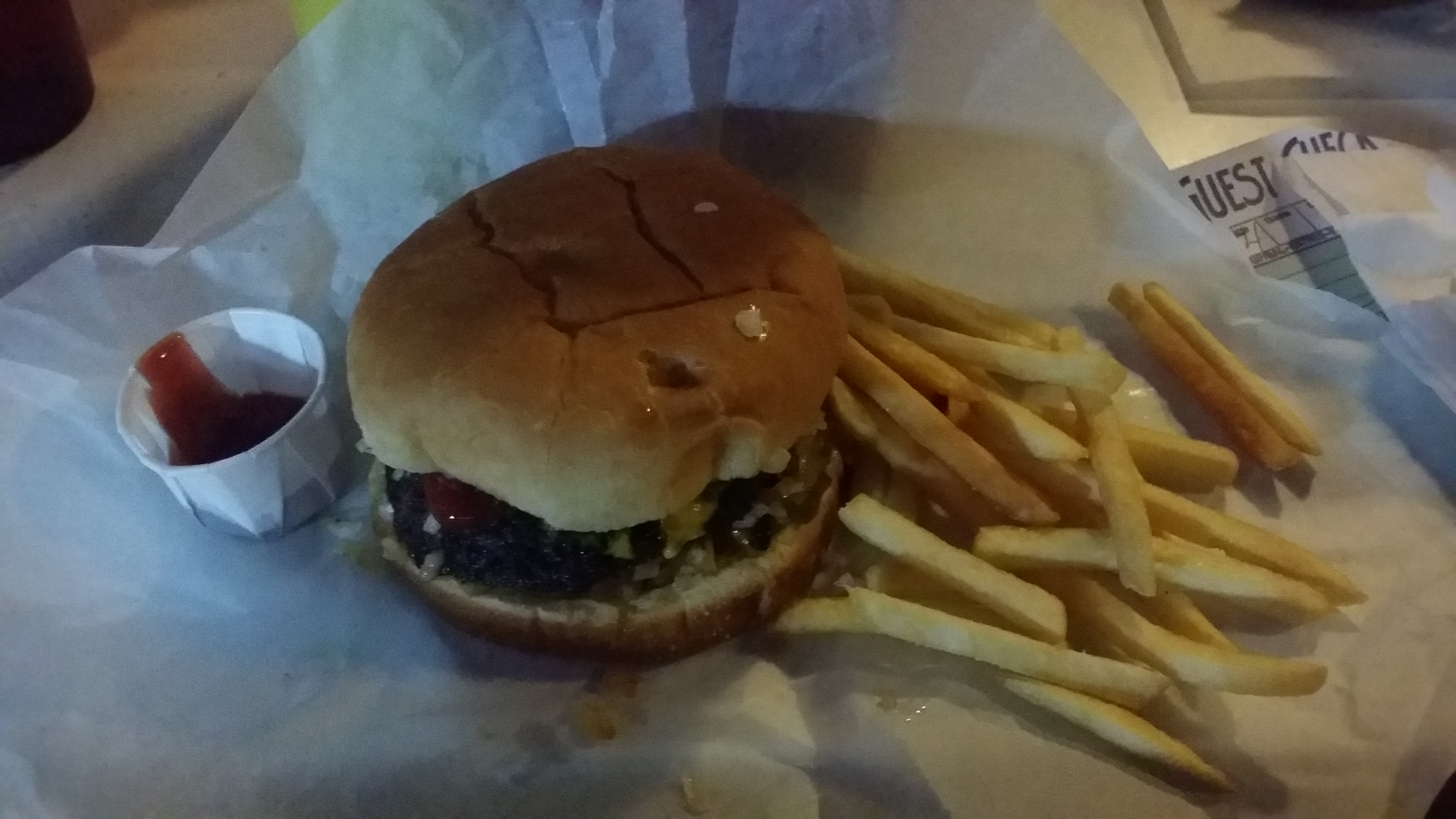 Deze hamburger was echt haast alleen maar vlees (met dan kaas in het midden) maar er zit heel veel variatie in de burgers die we tegenkomen. Van gemasseerd Wagyu vlees en Angus beef, tot zowat papier-achtige burgers die vooral uit paneermeel bestaan. Deze was echt heel lekker. Ik eet niet zo heel vaak hamburgers (want niet zo heel gezond natuurlijk), en als ik er dan eentje eet, moet ie ook wel lekker zijn!