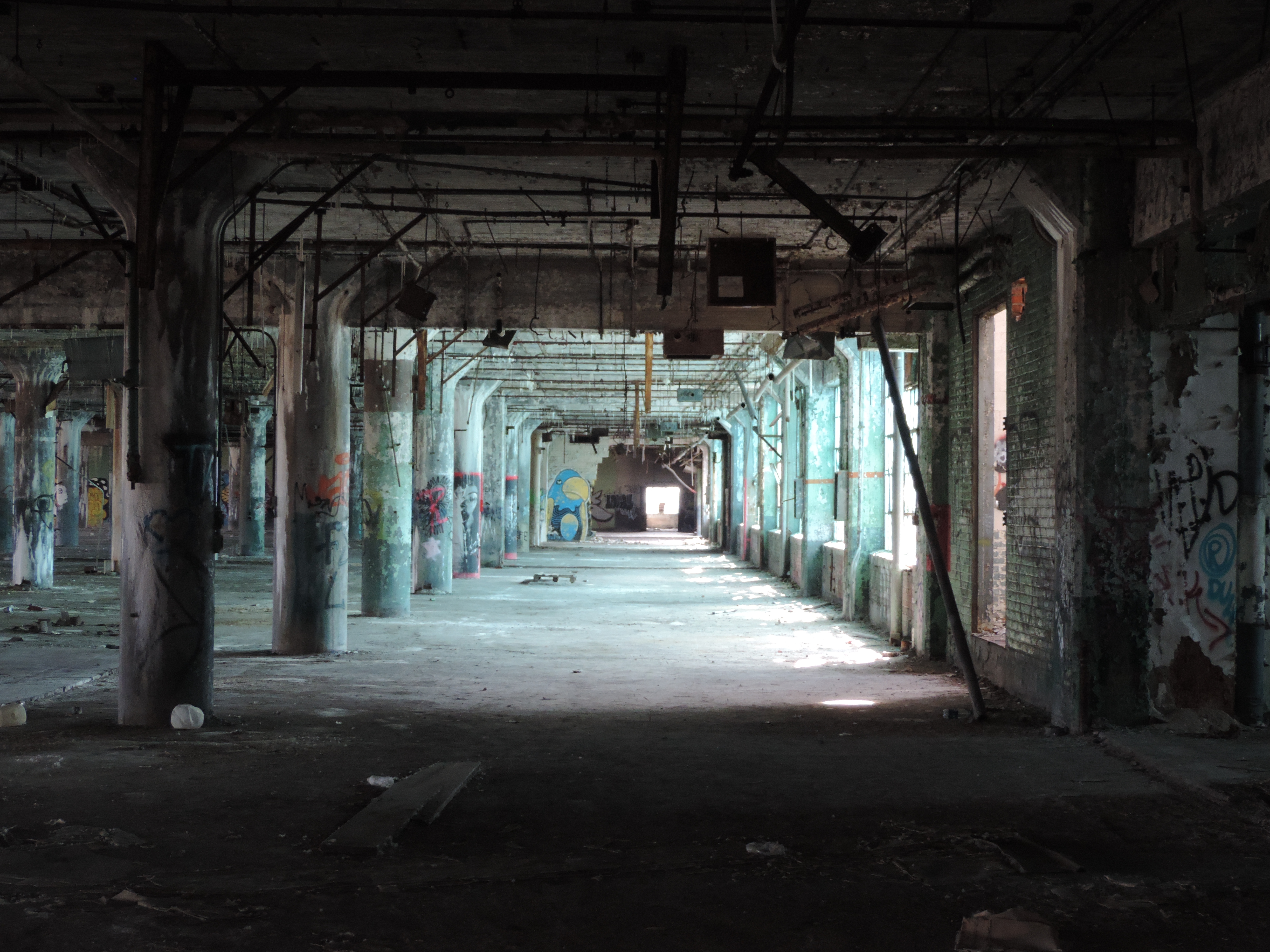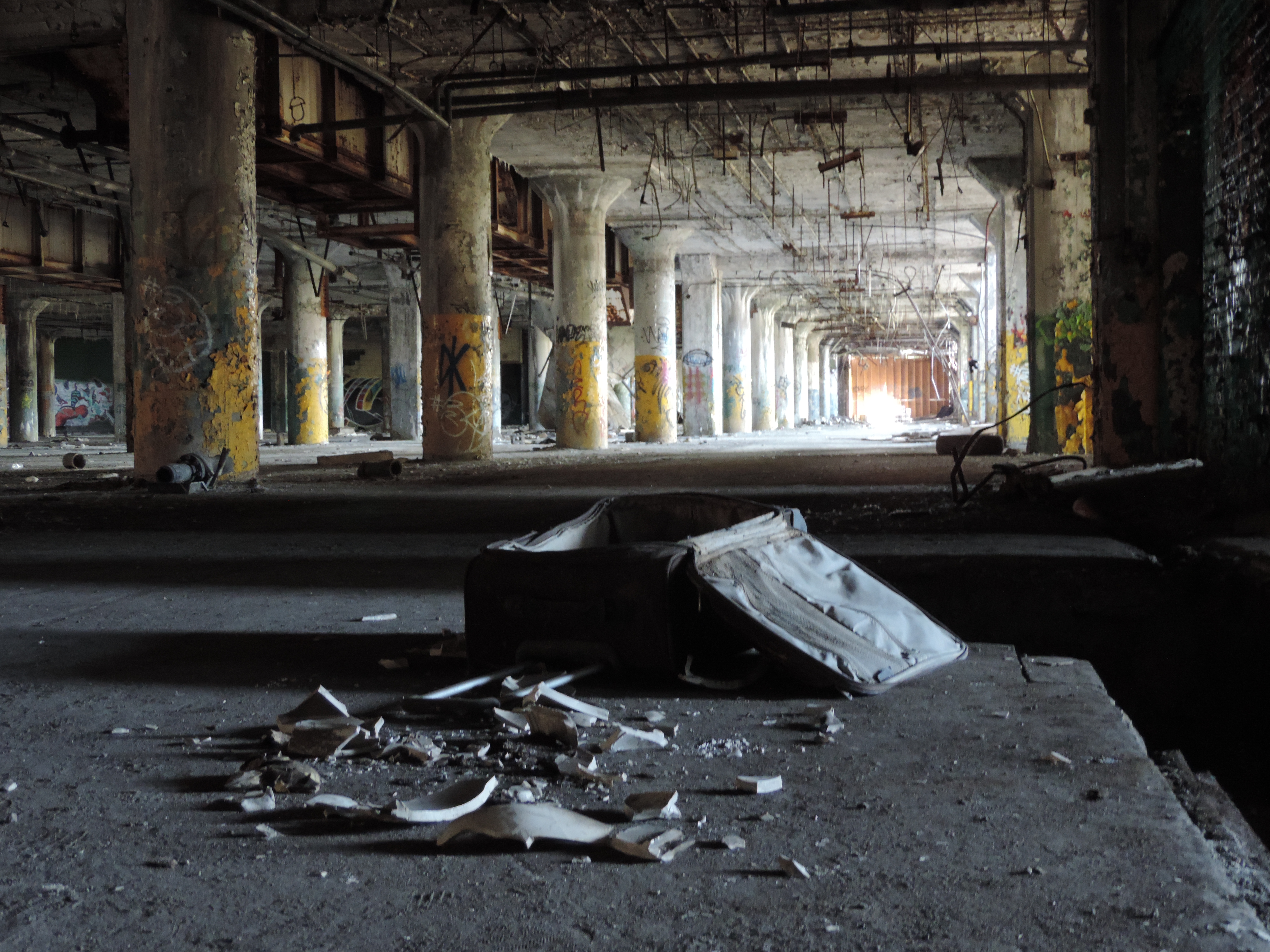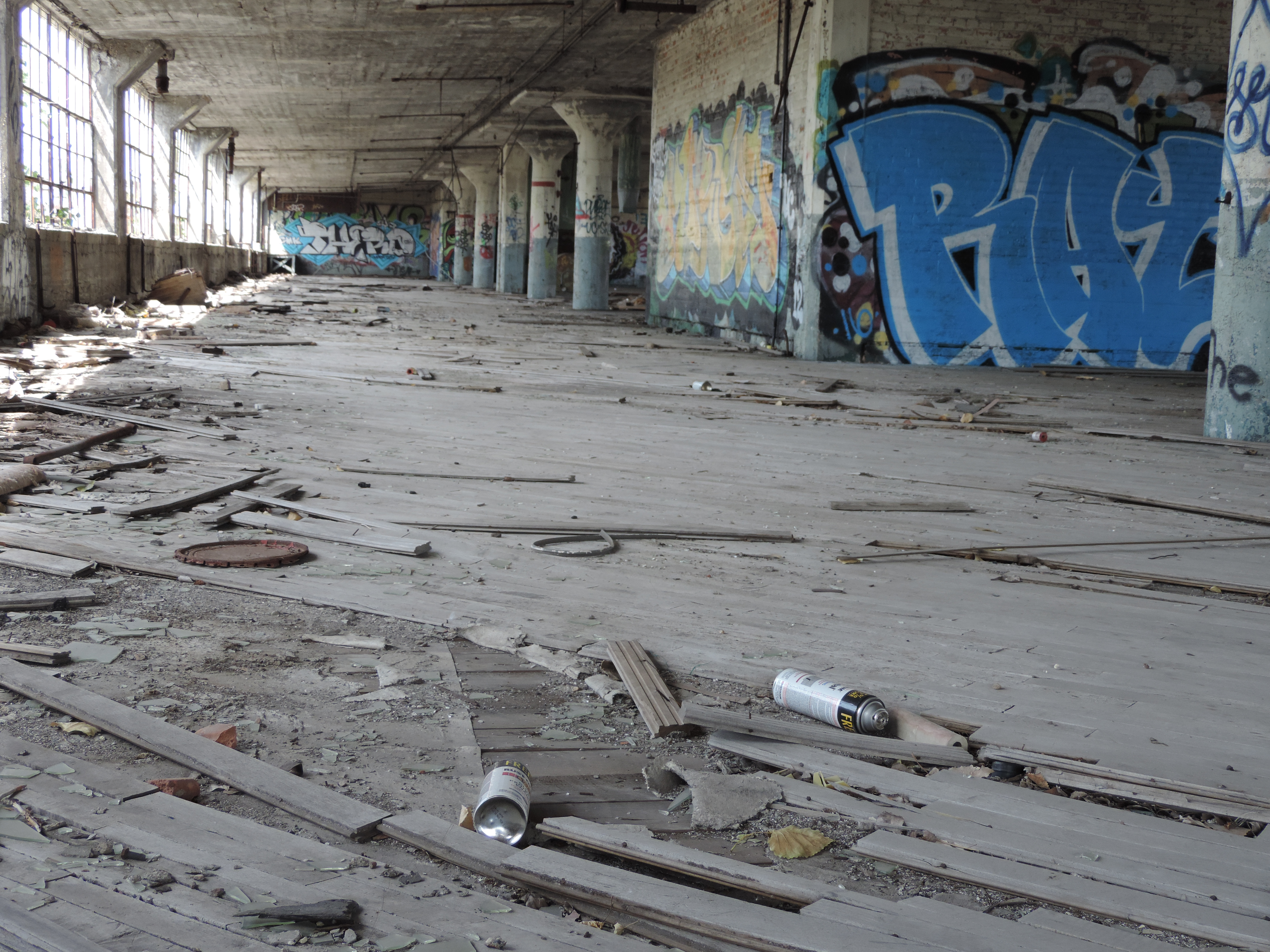 De combinatie van vroeger succes en een hele snelle neergang kun je in Detroit heel veel oude verlaten gebouwen zien. Denk dan aan vervallen huizen, maar ook aan verlaten autofabrieken (die destijds gewoon in de stad stonden, niet in een ‘corn field’ zoals ze dat nu zouden doen) en aan scholen die dicht zijn gegaan. Amerika is een groot land, en er is veel ruimte, dus men heeft die oude, vervallen huizen gewoon laten staan. Vergelijk dat met Nederland: daar worden oude, niet gebruikte gebouwen verkocht, verbouwd of afgebroken (uitzonderingen daargelaten). In Detroit was de ellende zo groot dat het te veel geld kostte om al die gebouwen af te breken (is ook duur – die dingen zitten natuurlijk vol met asbest en andere niet zulke toffe materialen).