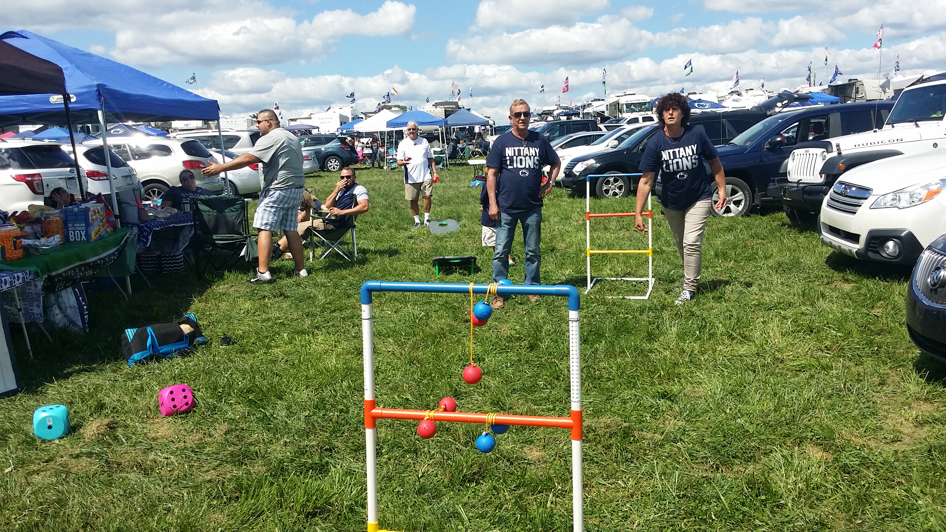 Het ging dit keer zelfs om de home opener – de eerste football wedstrijd van het seizoen. Pa en ma wilden ook wel eens zo’n football wedstrijd meemaken. Als Nederlander kan dat best – dat hebben we ook met Hendrieke en Robin gemerkt vorig jaar. Nu weten we inmiddels dat er bij een football wedstrijd ook een tailgate hoort. Traditioneel tailgaten wij met de familie van Emma, en dat deden we deze keer ook. Uiteraard allemaal (inclusief pa en ma!) in passend Nittany Lions t-shirt!