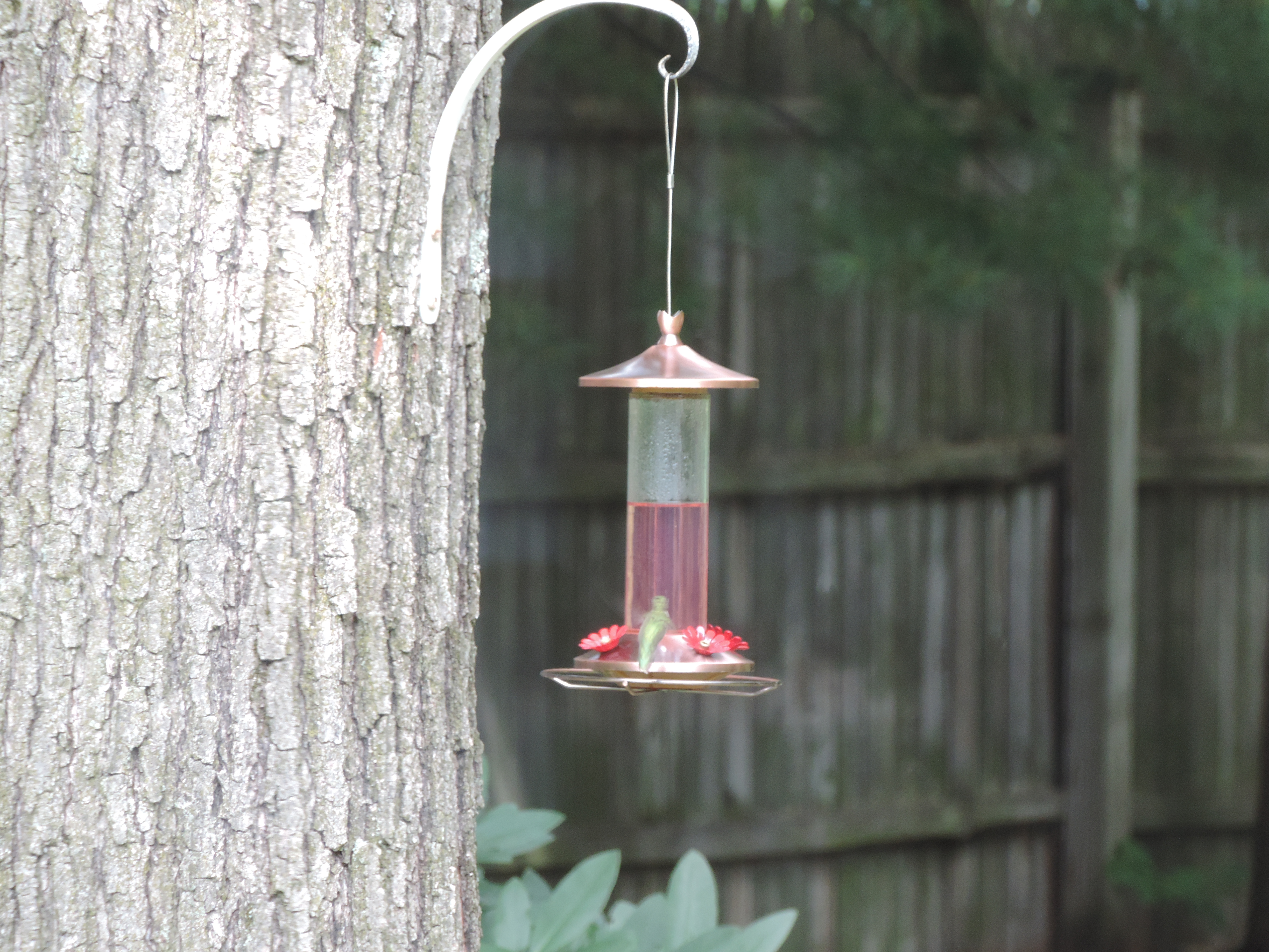 Ik blijf het gewoon proberen hoor, een scherpe kolibrie foto uit eigen tuin!