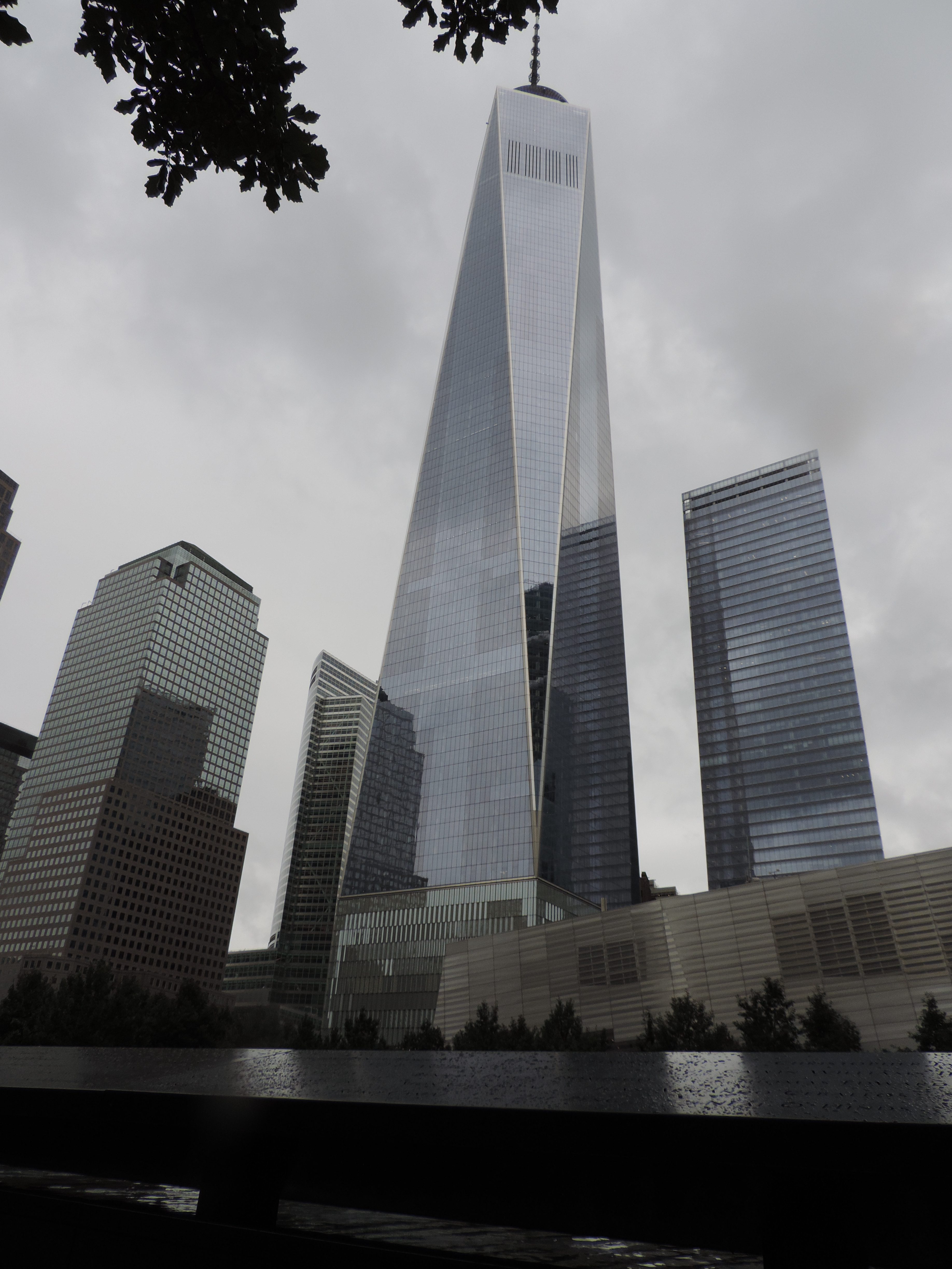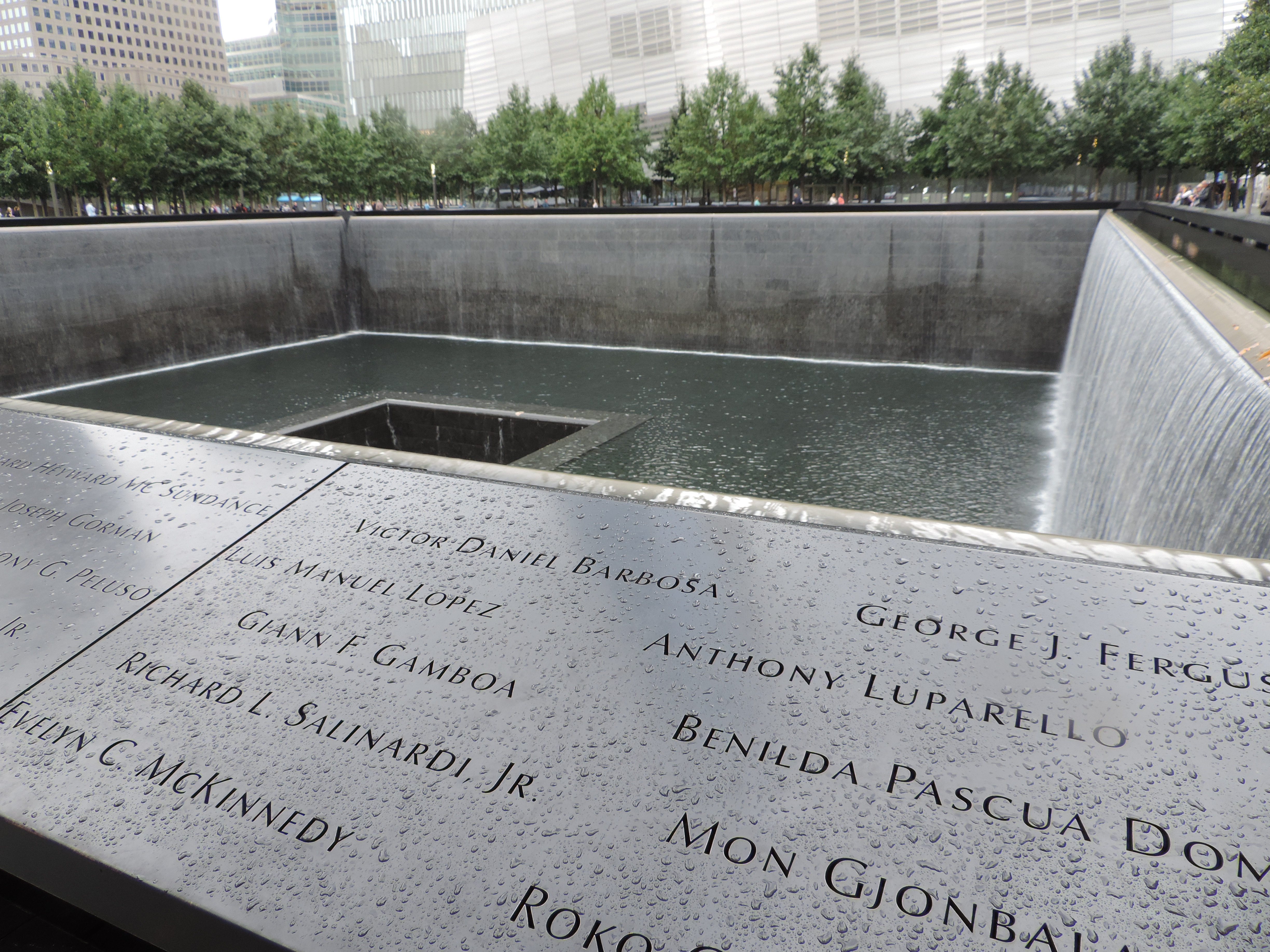 Op de plek waar tot 11 september 2001 de Twin Towers en nog een paar andere World Trade Center gebouwen stonden, staan nu andere gebouwen. Er staat een hele grote toren – het One World Trade Center, waar bovenin het One World Observatory is gevestigd. Er staat ook een museum – daarover later meer. En er is een heel groot herdenkingsmonument: in feite een grote ‘waterbak’, daar waar een van de twee Twin towers heeft gestaan. Rondom is een grote rand met daarin de namen van alle slachtoffers in gegraveerd. Dat is een heel indrukwekkend gebeuren.