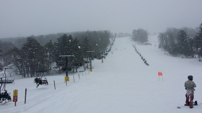Nu hebben wij in State College een eigen skibult, ‘Tussey Mountain’. Dat is dezelfde berg waar we in de zomer het Wingfest hebben (dat weten mijn ouders en de Vijfvinkels ook) en daar hebben ze ook batting cages (Klaas, Linda… weten jullie nog?). Nu is dat zeker geen Val Thorens en waarschijnlijk moeten zelfs Winterbergfans lachen om de pistes op Tussey Mountain, maar toch. De pistes hebben hier trouwens ook totaal schattige namen: ‘deer run’ (de hertenpiste), ‘chicken ridge’ (de kippenriggel) – het geeft een beetje aan hoe moeilijk de pistes normaal zijn. Het heeft een erg groot voordeel: we rijden er in een kwartier naartoe vanuit ons huis naartoe!